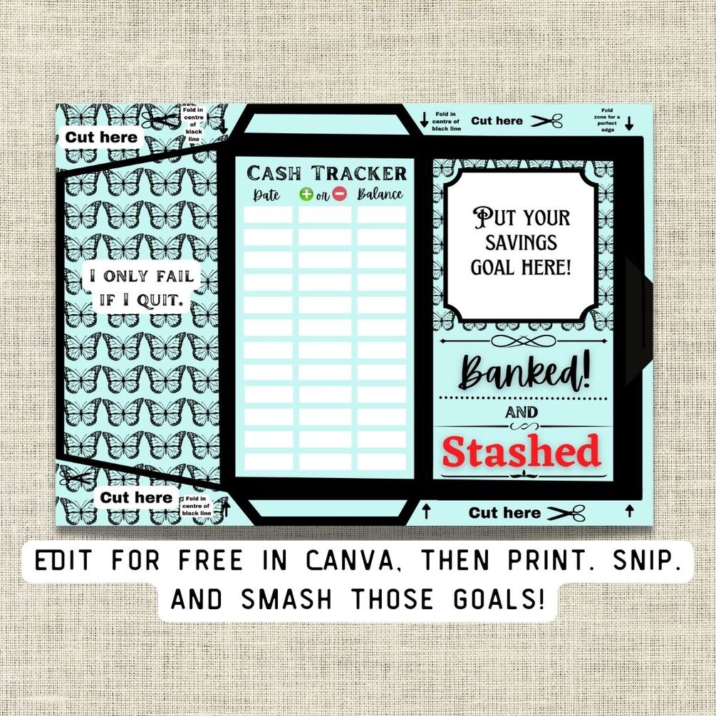 - Video shows variations, but you are purchasing one butterfly money saving cash envelope template.